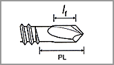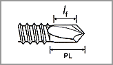 Screw threads advance seven to ten times faster than the drill flute can remove metal. The point length PL (the unthreaded portion from the tip to the first thread) should be long enough to allow the drilling of all materials to complete before the first thread engages material. The point length therefore must be equal to, or greater than, the total thickness of material to be drilled, Where more than one sheet of material is involved the calculation of the total thickness to be drilled must include any insulation or voids between the top and bottom materials.  |