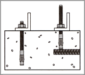 Tenn PK Wedge Anchor is a steel stud bolt with a nut and a washer on one end. The other end has a uniformly tapered mandrel around which an expansion collar is fitted. When the nut is tightened, the sleeve slightly expands and engages the wall of the hole preventing the anchor from turning in the hole. With further tightening, the tapered mandrel travels up the sleeve forcing it to expand and grip the sides of the hole.